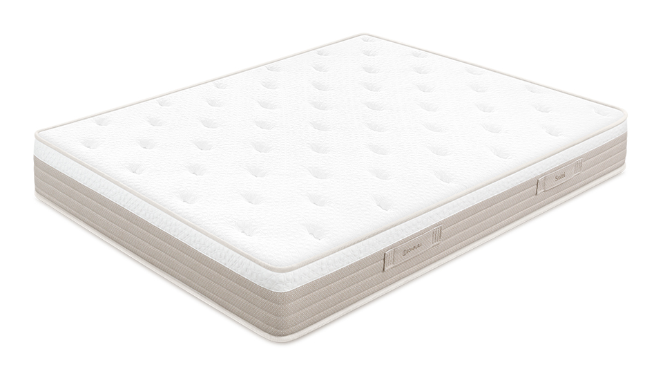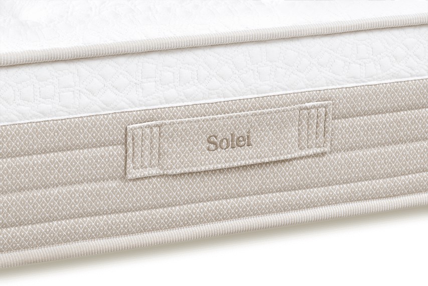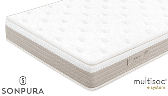 El colchón Solei de Sonpura, cuenta con núcleo de muelles ensacados Multisac System, con 500 muelles en medida de 150×190, que aísla en sacos individuales cada uno de los muelles que componen su interior y los distribuye siguiendo la posición natural del cuerpo. Acolchado con una capa de Viscoelástica de 42 Kg. de densidad, que se adapta totalmente al cuerpo por reacción a la temperatura corporal. Así como capas de Densitech y Perfilconfort, espumaciones que lo hacen estable y adaptable. Además cuenta con fibras hipoalergénicas, suaves y transpirables.
